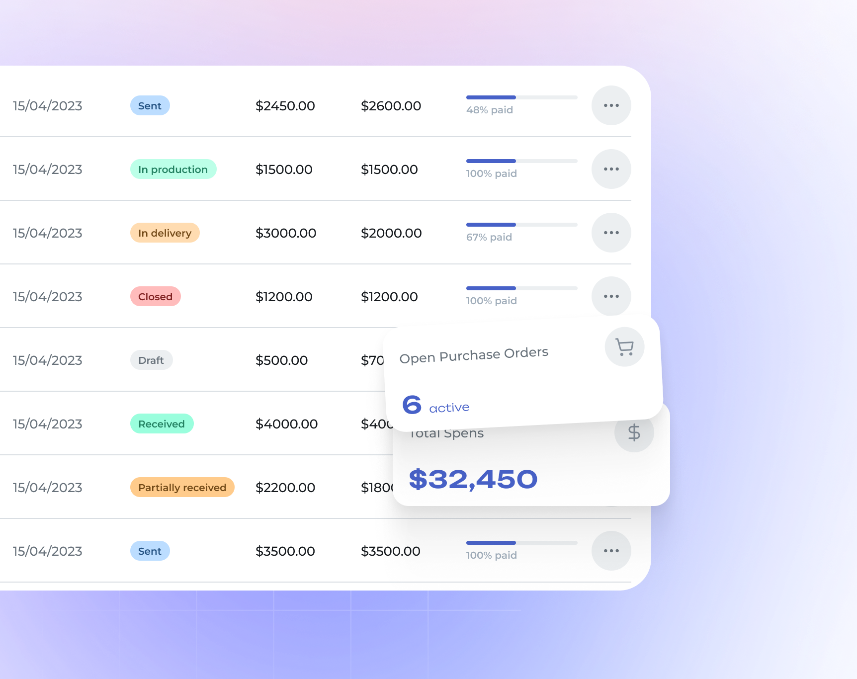 Get a clear, real-time overview of your inventory health, supplier performance, and open purchase orders, all in one place.