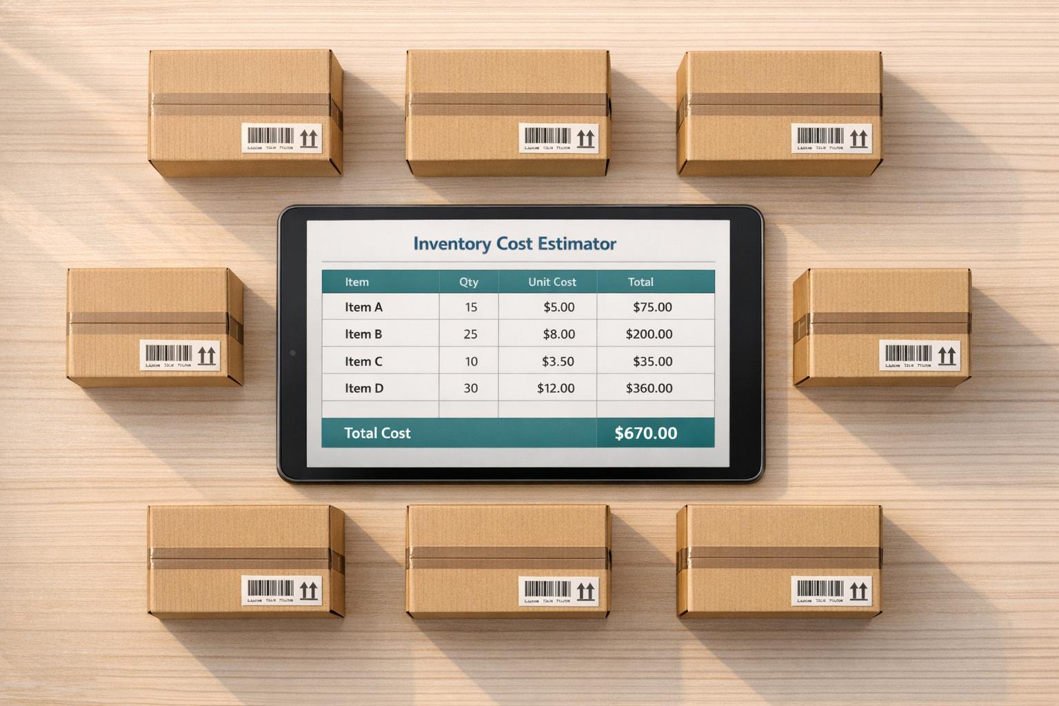 Calculate your inventory costs easily with our free tool! Input items, quantities, and costs to get a detailed breakdown and total cost.
