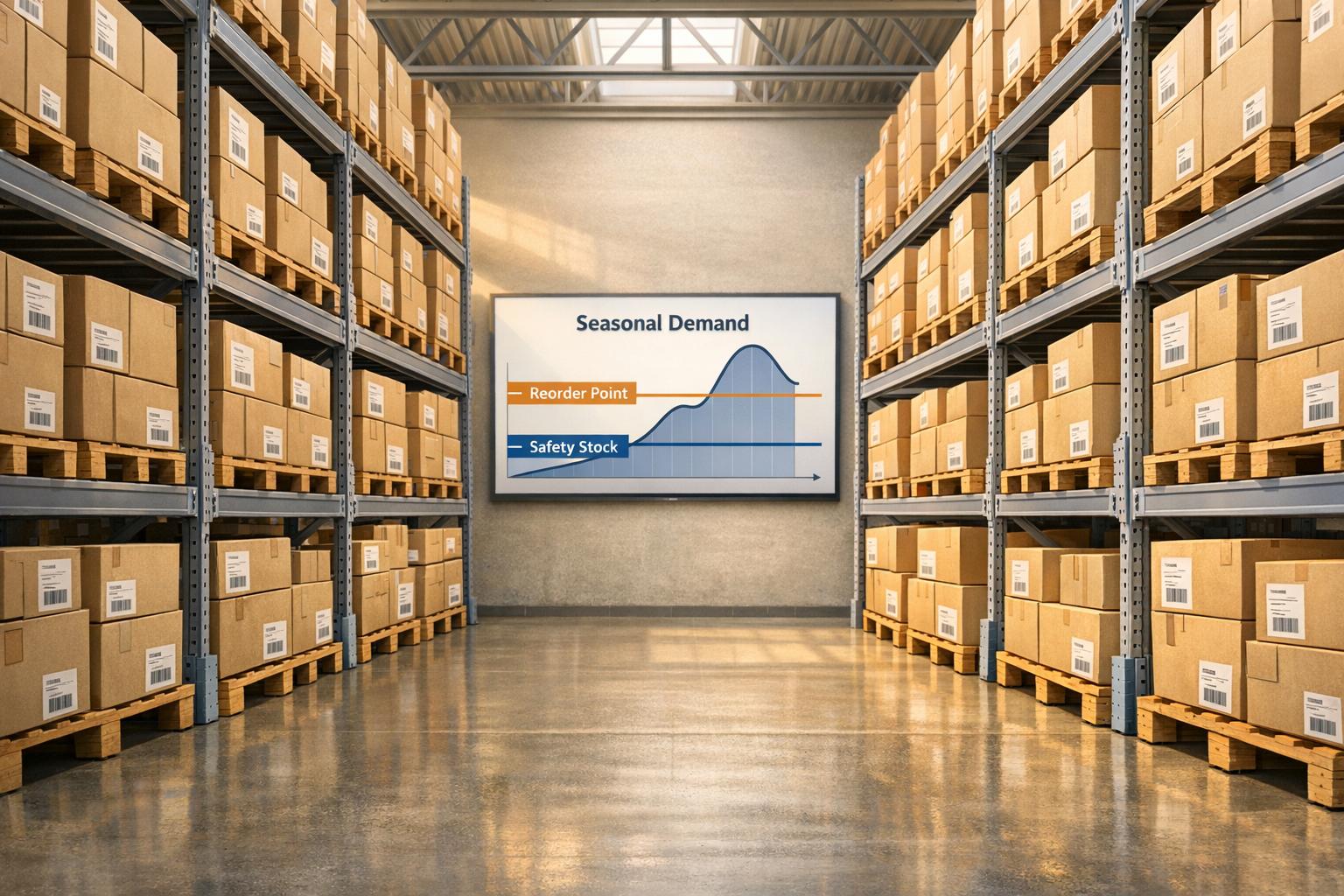 Recalculate reorder points, raise safety stock, and use demand forecasting to prevent stockouts and costly rush orders during seasonal peaks.